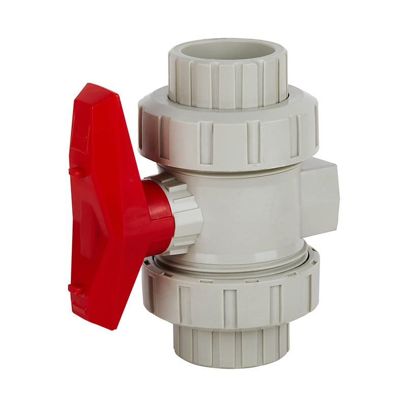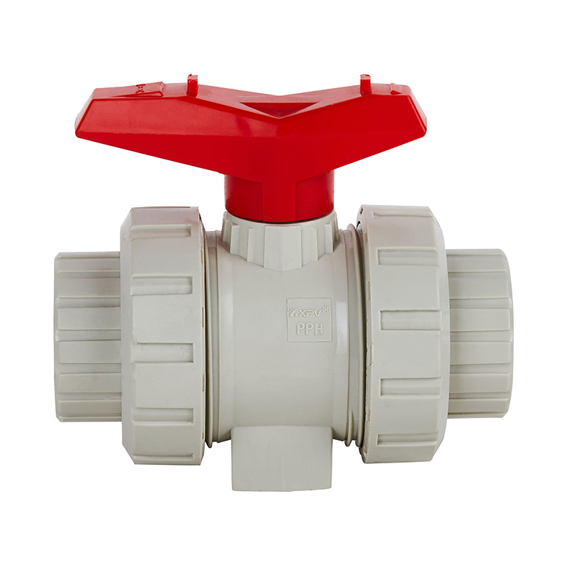 Erdgelbes, kundenspezifisches PPH-Kugelventil mit echtem Union-Anschluss für mittlere Temperaturen, manuelles, langlebiges industrielles Wasserventil aus Kunststoff