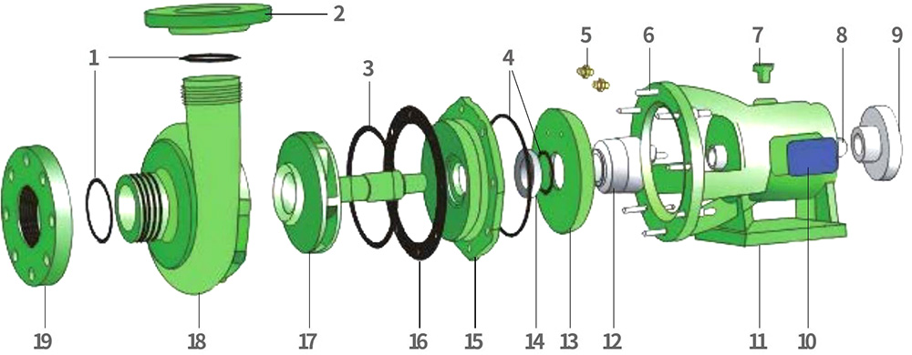 Unser Werk ist auf die Herstellung von korrosionsbeständigen Vollkunststoff-Kreisel- und selbstansaugenden Pumpen aus zwei Materialien – PVDF und FRPP – in vier Serien (FV, FP, FVZ, FPZ) spezialisiert. PVDF-Pumpen eignen sich für den Umgang mit starken Säuren, starken Oxidationsmitteln, Halogenen, aromatischen Kohlenwasserstoffen, aliphatischen Verbindungen und chlorierten Lösungsmitteln und haben einen Betriebstemperaturbereich von -40 °C bis 140 °C. FRPP-Pumpen eignen sich ideal für starke Laugen sowie allgemeine Säuren, Basen, Salze und deren Derivate und haben einen Betriebstemperaturbereich von -40 °C bis 90 °C. Der Antrieb der Pumpen erfolgt typischerweise durch energieeffiziente Y-Motoren. Auf Anfrage können auch explosionsgeschützte Motoren geliefert werden.