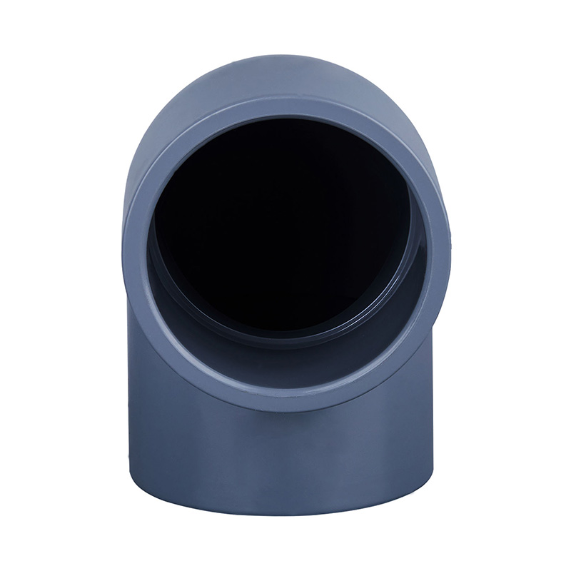 Hochwertige hellgraue PVC-C 90°-Winkelform DN15-DN600 1,0-1,6 MPa Arbeitsdruck-Kunststoffrohrverbindungen für die Chemie- und Wasserindustrie