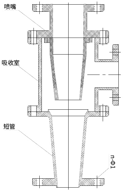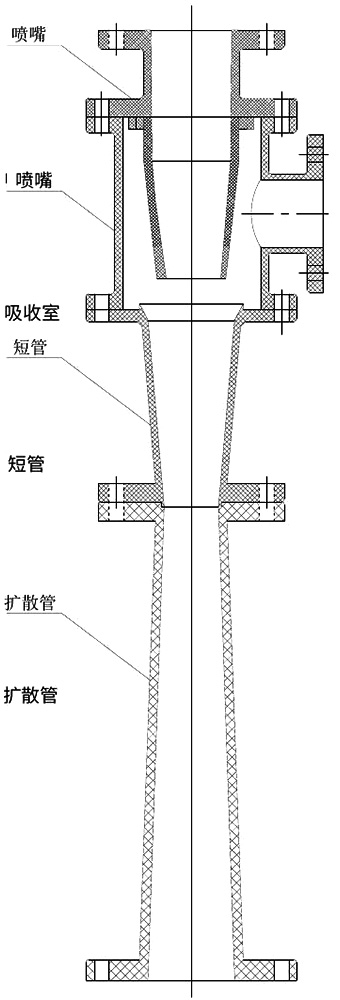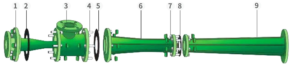 Detailzeichnung der Reihenverbindung der Strahlpumpenbaugruppe für kohlensäurehaltiges Wasser