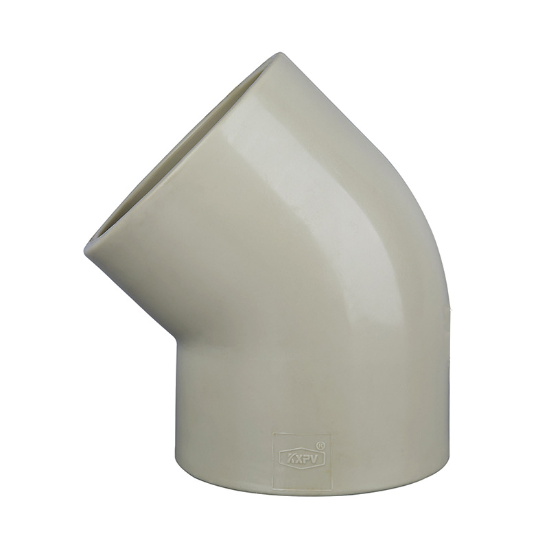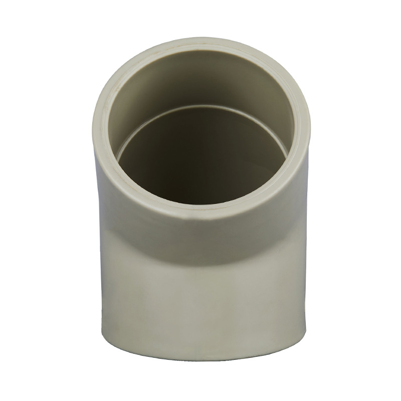 Super langlebige erdgelbe Schmelzmuffe, 45°-Winkel mit gleicher Form, professionelle Standardabmessungen DN15-100, Kunststoffrohrverschraubungen, PPH, 45°-Winkel
