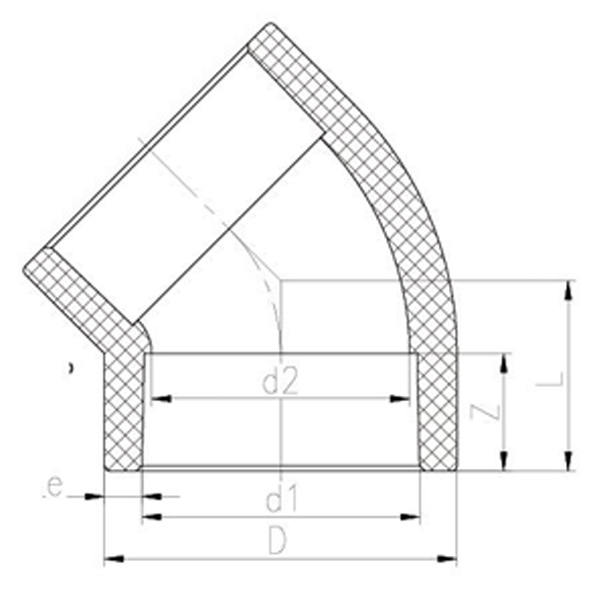 PPH Hotmelt-Muffe 45°-Winkel DN15-100 GB Standard