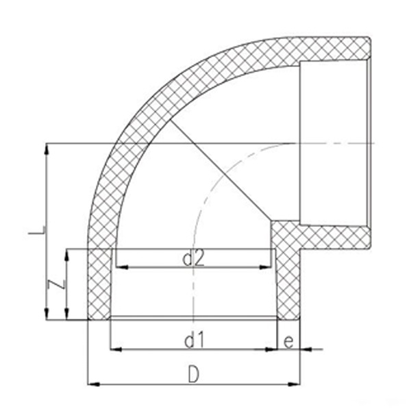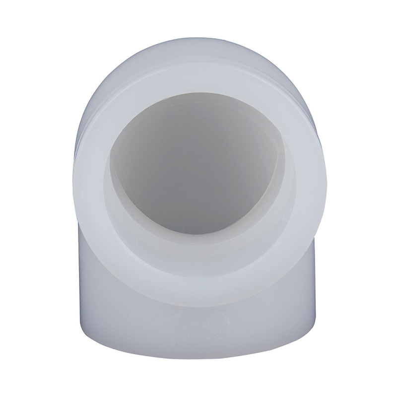 Hochwertiges weißes PVDF-90°-Winkelstück mit gleicher Form DN15-DN100 1,0-1,6 MPa Arbeitsdruck-Kunststoffrohrverschraubung für die Chemie- und Wasserindustrie