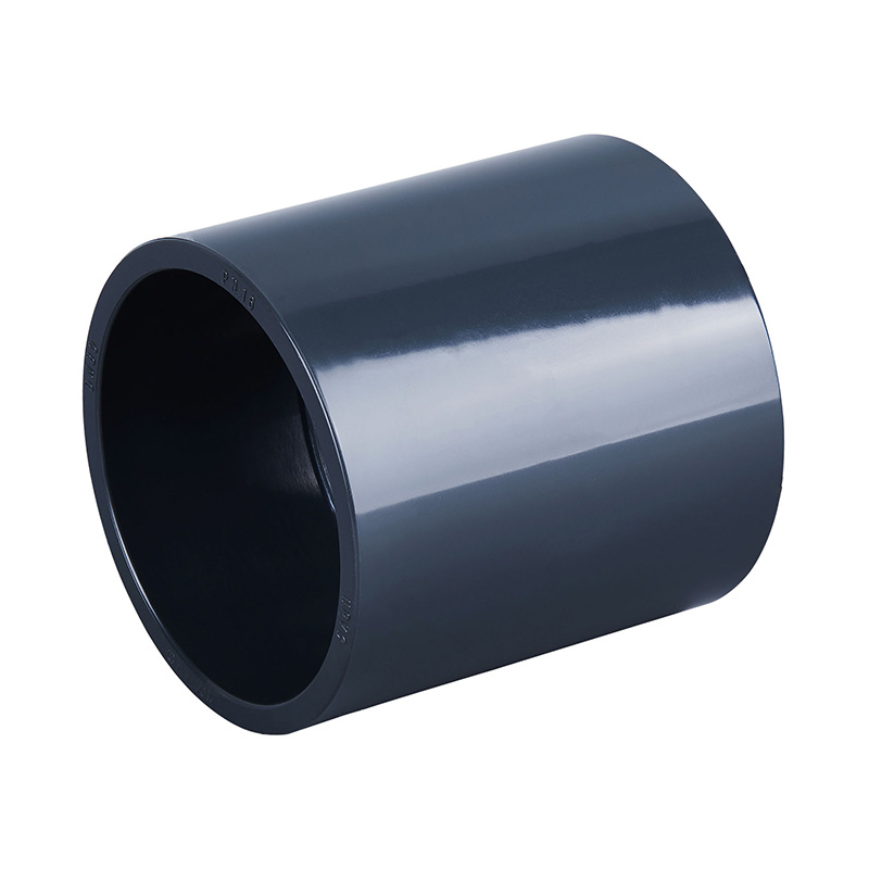 Dunkelgraue gerade PVC-U-Kupplung, DN15-DN600, kundenspezifisch 10 Zoll, 12 Zoll, industrielle Kunststoffrohrverschraubung für die Chemie- und Wasserversorgung, ANSI SCH80-Standard