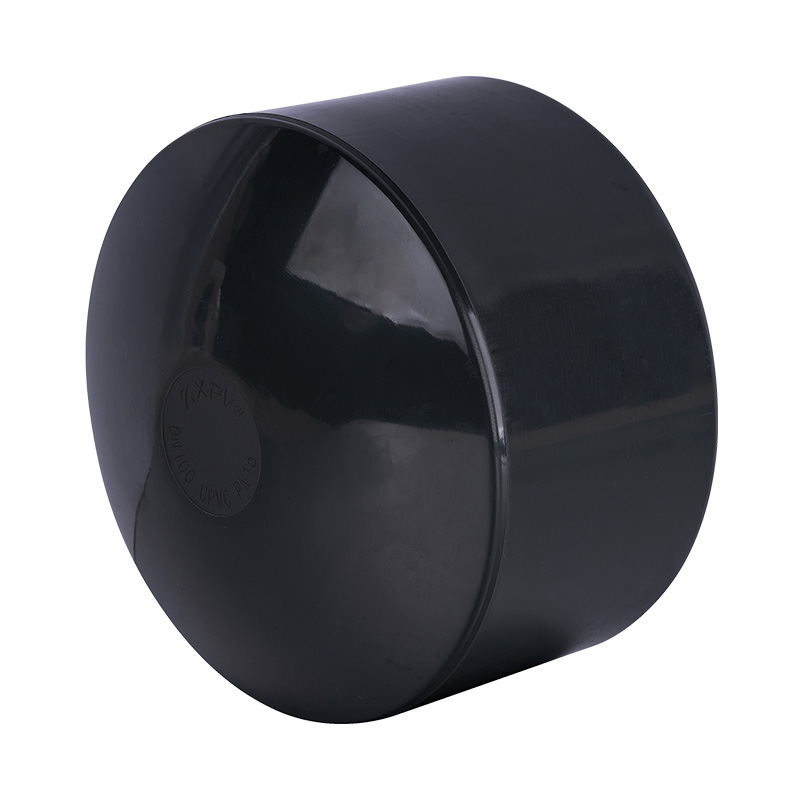 Dunkelgraue PVC-U-Rohrendkappe, DN15-DN200, kundenspezifisch 10 Zoll, 12 Zoll, industrielle Kunststoffkappe für die Chemikalien- und Wasserversorgung, ANSI SCH80-Standard